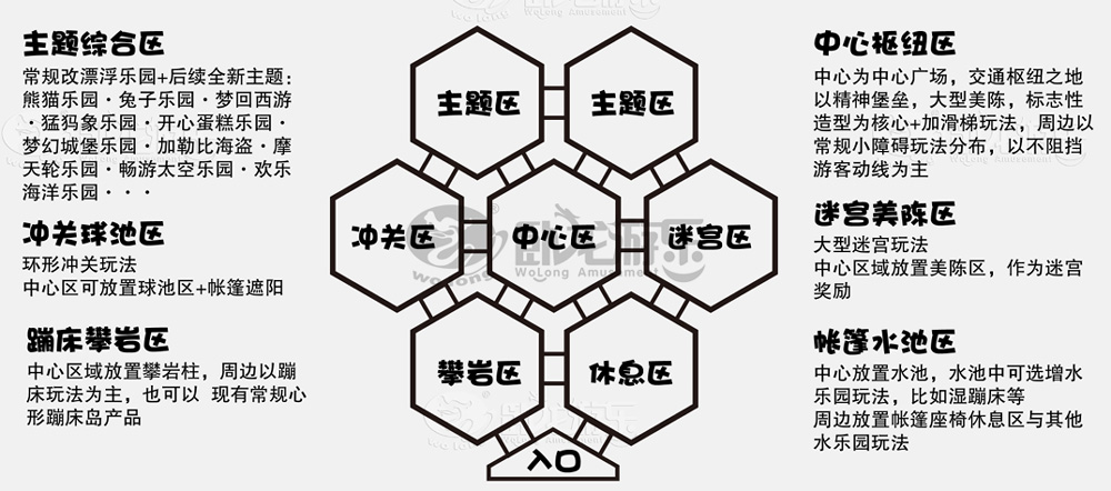 水上產(chǎn)品種類繁多,各種產(chǎn)品有各種樣式玩法,沖關(guān)類產(chǎn)品玩法較多,但其適宜青年人群,一些沖關(guān)難度不適合年齡小一點的孩子,還有水上樂園類產(chǎn)品,在水面使用能夠很好的體驗到踩在水面上的感覺,但其玩法卻很少;本款產(chǎn)品結(jié)合上述產(chǎn)品的優(yōu)點來彌補彼此之間的不足;不僅擴大產(chǎn)品使用人群的年齡范圍,也為產(chǎn)品增添多種玩法,保留游客使用時踩在水面上的體驗感;其產(chǎn)品為水上漂浮樂園系列產(chǎn)品:組合式模塊化水上漂浮樂園,可多種組合和模塊化拼接,布局自由,玩法多樣。